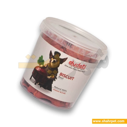 این بیسکویت با طعم لبو و فواید طبیعی آن، تجربهای سالم و لذیذ برای سگها فراهم میکند. برند دودوتی با تمرکز بر طعم و سلامت، محصولی تولید کرده که هم خوشایند و هم مغذی است.