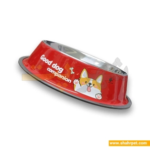 ظرف آب و غذای استیل قرمز طرح دار سگ و گربه متوسط